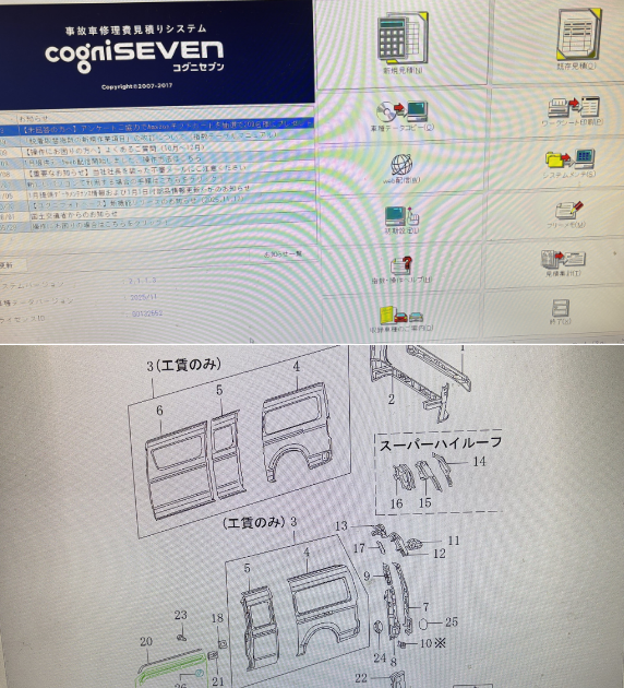 当店では、事故車修理費見積りシステム「コグニセブン」導入しております。LINEで車検証と損傷箇所の写真を送るだけで、スピーディにお見積りいたします。