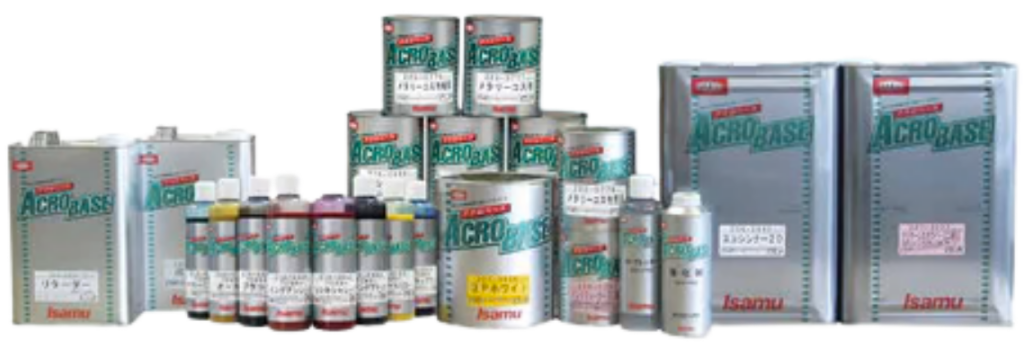 当店では、高い作業効率とコストパフォーマンスを両立した「イサム塗料」を使用しています。環境にやさしいベースコートでありながら、隠ぺい性・作業性に優れ、ムラの少ない美しい仕上がりを実現。豊富な調色データにより、ボディカラーを正確に再現できるのも特長です。